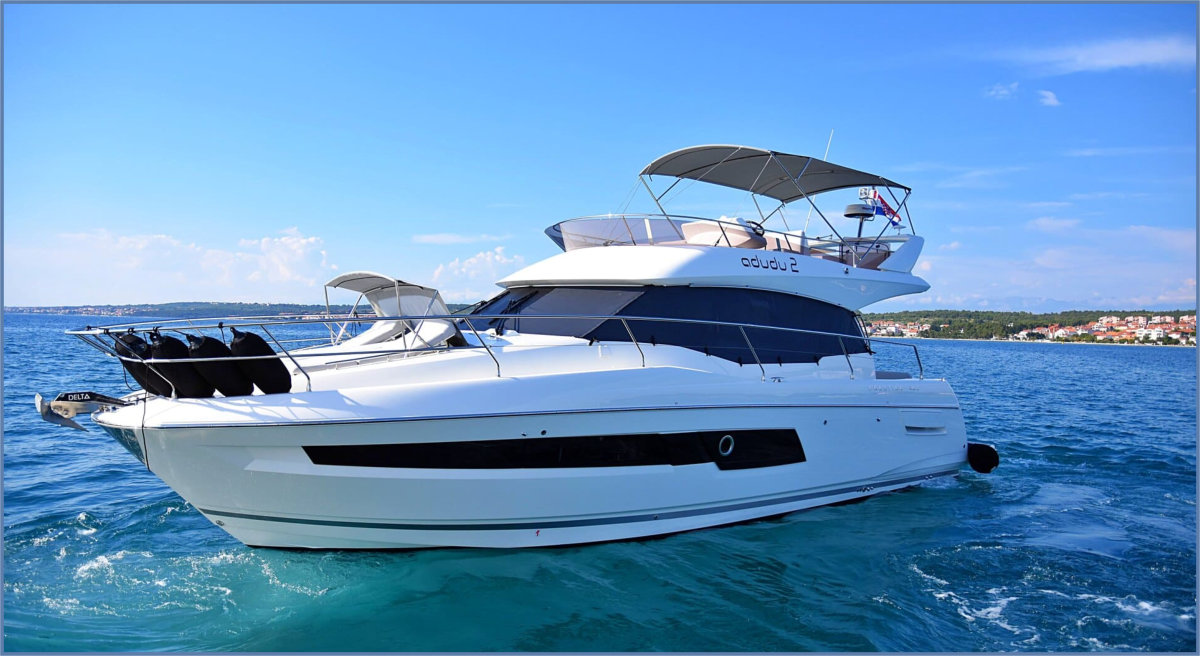 Adudu 2 has an XXL flybridge, 2 toilets with shower, a power
